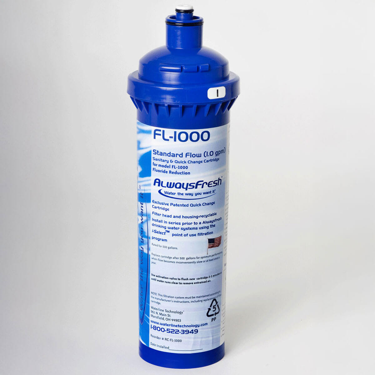 RC-FL-1000 Alwaysfresh® Fluoride Reduction Cartridge. Add this cartridge before our standard drinking water cartridge to reduce municipal supplied water with fluoride added. Max level not to exceed 4 mg/L per US EPA guidelines. Tested to NSF/ANSI std 53 for reduction of fluoride not to exceed 4 mg/L in source water.